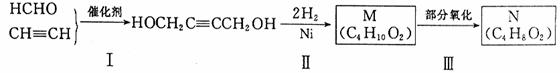 以 HCHO 和 C2H2为有机原料,经过下列反应可得化合物 N ( C4H8O2)。