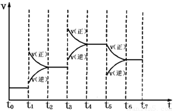 2NH3(g) DH=-92.2 kJ·mo1-1 ,下图表示在时间t0~t7中反应速率与反应过程的曲线图,则容器内氨的百分含量最高的一段时间是(只改变单一的条件)