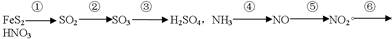 接触法制硫酸和工业制硝酸分别经过以下变化:![]()