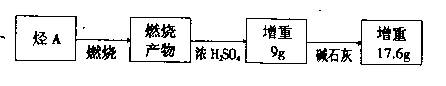 (6分)取标准状况下2.24L某气态烃A置于密闭容器中,再通入足量的O2,用电火花引燃,燃烧产物的定量测定实验数据如下(图中的箭头表示气体的流向)。