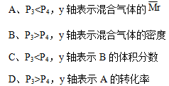 B、P3>P4,y轴表示混合气体的密度