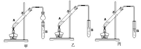 (6分)某研究性学习小组成员分别设计了如下甲、乙、丙三套实验装置制取乙酸乙酯。请