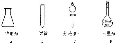 实验室中配制250mL 0.20mo1·L-1NaOH溶液时,必须使用到的玻璃仪器是 ( ) ![]()