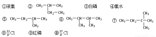 ③白磷 ④氯气 ⑤2,2-二甲基丁烷 ⑥氯水