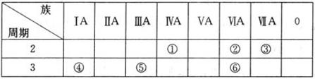 (8分)下表列出了①~⑥六种元素在元素周期表中的位置。![]()
