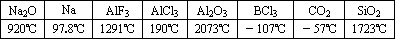 | Na2O | Na | AlF3 | AlCl3 | Al2O3 | BCl3 | CO2 | SiO2 |