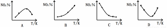 反应相同时间后,分别测定体系中NO2的百分含量(NO2%),并作出其随反应温度(T)变化的关系图。下列示意图中,可能与实验结果相符的是 ( )