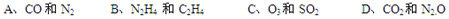 A、CO和N2 B、N2H4 和C2H4 C、 O3和SO2 D、 CO2和N2O