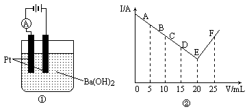 有一实验①如图所示,将30 mL 0.1 mol/L Ba(OH)2溶液置于烧杯中,然后边搅拌边慢慢加入0.1 mol/L某第3周期元素形成的某酸溶液共25 mL,加入酸溶液的体积V和电流强度I的I-V图如图②所示.
