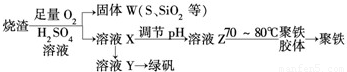 (16分)聚合硫酸铁又称聚铁,化学式[Fe2(OH)n(SO4)3-0.5n]n,广泛用于汗水处理,实验室利用硫酸厂烧渣(主要成分为铁的氧化物及少量FeS、 SiO2等)制备聚铁和绿矾(FeSO4·7H2O),过程如下:![]()