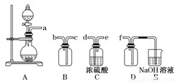 (2)实验室制备,收集干燥的SO2,所需仪器如下。装置A产生SO2,按气流方向链接各仪器口,顺序为a→_____→_____→_____→_____→f。装置D的作用是_________,装置E中NaOH溶液的作用是________________。![]()