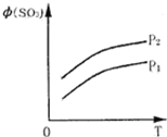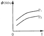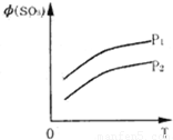2SO3(g);ΔH<0,在不同温度、不同压强(P1>P2)下达到平衡时,混合气中SO3的体积φ(SO3)随温度变化的曲线应为( )