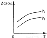 2SO3(g);△H<0,在不同温度、不同压强(P1>P2)下达到平衡时,混合气中SO3的体积φ(SO3)随温度变化的曲线应为( )