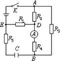 如图所示电路中,电源电动势为30伏特,内阻为1欧姆,电容器电容C=1×10-5法拉.电阻R1=R2=6欧姆,R3=4欧姆,R4=R5=2欧姆,开关K闭合到电路稳定后,求: