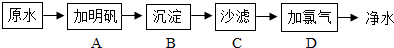 11.2010年2月27日,智利发生里氏8.8级特大地震.灾区饮水安全成为人们关注的重要问题.饮用水可由原水经过如下的净化步骤得到:
