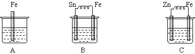(4)三烧杯中铁被腐蚀的速率由快到慢的顺序是 。![]()