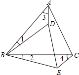 (2009•普陀区一模)如图,D为△ABC内一点,E为△ABC外一点,且∠1=∠2,∠3=∠4.