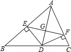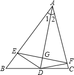 如图,△ABC中,AD是∠BAC的平分线,DE⊥AB,DF⊥AC, E、F为垂足,连接EF交AD于G,试判断AD与EF垂直吗?并说明理由.