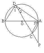 已知,如图,AB为⊙O的直径,弦DC延长线上有一点P,∠PAC=∠PDA.【小题1】求证:PA是⊙O的切线;【小题2】若AD=6,∠ACD=60°, 求⊙O的半径.
