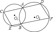 已知:如图,⊙O1与⊙O2相交于A、B两点,过A的直线交⊙O1于C,交⊙O2于D,过B的直线交⊙O1于E,交⊙O2于F,且CD∥EF.