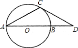 如图,AB是⊙O的直径,弦AC与AB成30°角,CD与⊙O切于C,交AB的延长线于D,