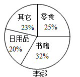 如图是张亮、李娜两位同学零花钱全学期各项支出的统计图.根据统计图,下列对两位同学购买书籍支出占全学期总支出的百分比作出的判断中,正确的是( )