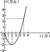 为了顺应市场要求,无为县花炮厂技术部研制开发一种新产品,年初上市后,公司经历了从亏损到盈利的过程.下面的二次函数图象(部分)刻画了该厂年初以来累积利润s(万元)精英家教网与销售时间t(月)之间的关系(即前t个月的利润总和s和t之间的关系).根据图象提供的信息,解答下列问题:
