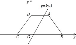 如图:等腰梯形ABCD中,AD∥BC,BC在x轴上,直线y=kx-1平分ABCD的面积,已知A(4,2),则k=