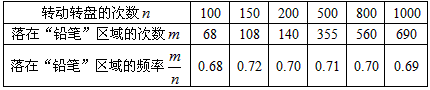 | B、假如你去转动转盘一次,获得铅笔的概率大约是0.70 |