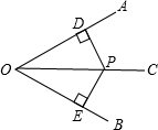 如图所示,P是∠AOB的角平分线OC上的任意一点,PD⊥OA于点D,PE⊥OB于点E,则PD与PE的大小关系是PD______PE.