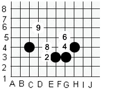 如图,围棋盘的左下角呈现的是一局围棋比赛的几手棋.为记录棋谱方便,横线用数字表示,纵线用英文字母表示,这样,黑棋①的位置可记为(C,4),白棋②的位置可记为(E,3),则白棋⑨的位置应记为________.