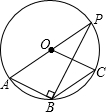 如图,AP为⊙O的直径,B、C为⊙O上的点,BC∥OA且BC=OA,则∠P= 度。