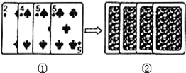四张扑克牌的牌面如图①所示,将扑克牌洗均匀后,如图②背面朝上放置在桌面上。