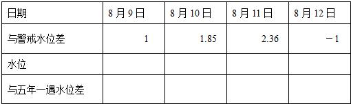| 与警戒水位差 | 1 | 1.85 | 2.36 | -1 |
