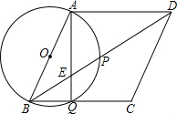 已知:平行四边形ABCD,以AB为直径的⊙O交对角线BD于P,交边BC于Q,连接AQ交BD于E,若BP=PD,