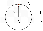 如图,在同一平面内,有一组平行线l1、l2、l3,相邻两条平行线之间的距离均为4,点O在直线l1上,⊙O与直线l3的交点为A、B,AB=12,求⊙O的半径.