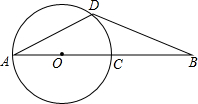 精英家教网如图,AC为⊙O直径,B为AC延长线上的一点,BD交⊙O于点D,∠BAD=∠B=30°