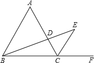 如图,△ABC是等边三角形,且AB∥CE.![]()