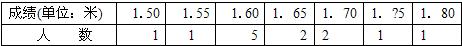 (2013•桐乡市一模)在一次中学生田径运动会上,参加男子跳高的15名运动员的成绩如下表所示: