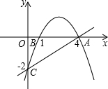 如图,抛物线经过A(4,0)、B(1,0)、C(0,-2)三点.