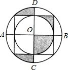 如图,正方形的四个顶点在直径为4的大圆圆周上,四条边与小圆都相切,AB、CD过圆心O,且AB⊥CD,则图中阴影部分图形的面积和是