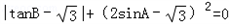 △ABC中,∠A、∠B均为锐角,且|tanB-