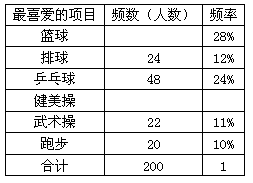 | 最喜欢的项目 | 频数(人) | 频率 |