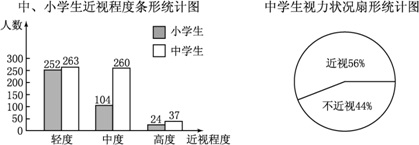 某市青少年健康研究中心随机抽取了本市1000名小学生和若干名中学生,对他们的视力状况进行了调查,并把调查结果绘制成如下统计图.(近视程度分为轻度、中度、高度三种)