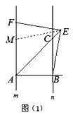 (1)当k=1时,在图(1)中,作∠BEF=∠ABC,EF交直线m于点F.写出线段EF与EB的数量关系,并加以证明;![]()