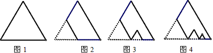 如图,图1是一块边长为1,面积记为S1的正三角形纸板,沿图1的底边剪去一块边长为的正三角形纸板后得到图2,然后沿同一底边依次剪去一块更小的正三角形纸板(即其边长为前一块被剪掉正三角形纸板边长的)后,得图3,图4,…,记第n(n≥3)块纸板的面积为Sn,则Sn=