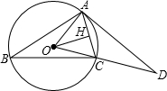 精英家教网已知:如图△ABC内接于⊙O,OH⊥AC于H,过A点的切线与OC的延长线交于点D,∠B=30°,OH=2