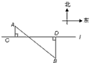 如图,A,B是公路l(l为东西走向)两旁的两个村庄,A村到公路l的距离AC=1km,B村到公路l的距离BD=2km,B村在A村的南偏东