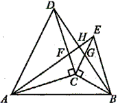 如图,△ACD和△BCE都是等腰直角三角形,∠ACD=∠BCE=90°,AE交DC于F,BD分别交CE,AE于点G、H试猜测线段AE和BD数量关系,并说明理由