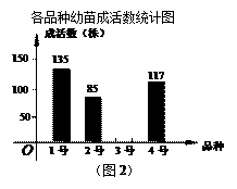 (2)求出3号果树幼苗的成活数,并把图2的统计图补充完整;